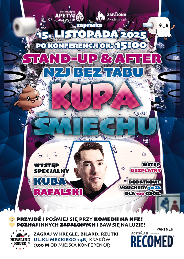 Po intensywnym dniu pełnym wiedzy i inspirujących rozmów podczas konferencji „Zapalenie Jelit Bez Tabu”, czas na chwilę luzu, relaksu i… ogromną kupę śmiechu!